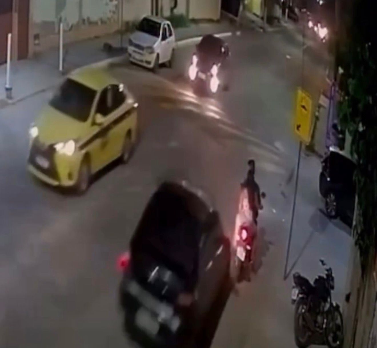 O caso aconteceu na esquina da Rua 2 com a Rua 67, em frente a um mercadinho da Avenida 2. Imagens de câmeras de segurança registraram o momento em que o veículo atinge o casal, que estava parado na via.